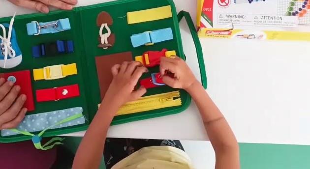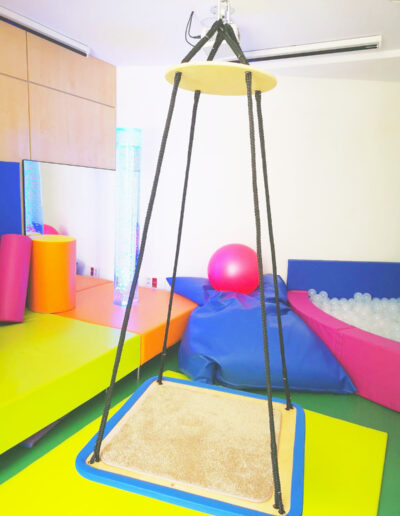 Hola, soy Cris. Mi sala está llena de colchonetas, columpios, luces de colores y ¡hasta una piscina de bolas! ¿Te gustaría jugar conmigo a hacer un circuito de obstáculos o a pringarnos de espuma de afeitar? También te puedo enseñar a vestirte solito, atarte los cordones, a escribir, a saber, ¡cómo relajarte cuando estás nervioso y hasta a comer alimentos que pensabas que no te gustaban! Aprenderás un montón de cosas mientras jugamos juntos. ¿Te animas?